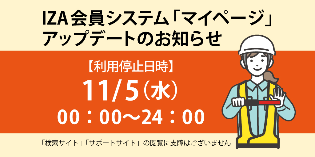 2025/10/21 | IZA会員システム「マイページ」のアップデートに伴う利用停止について |