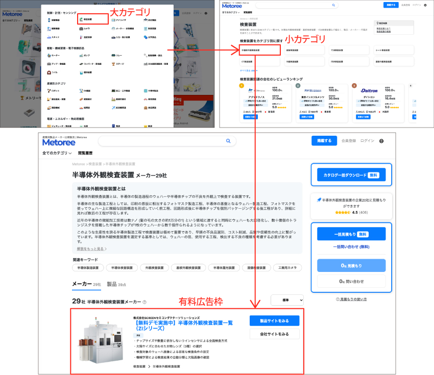 「いざ検索」が会員の皆様に代わって、産業用製品検索サービス「Metoree」に広告掲載します。